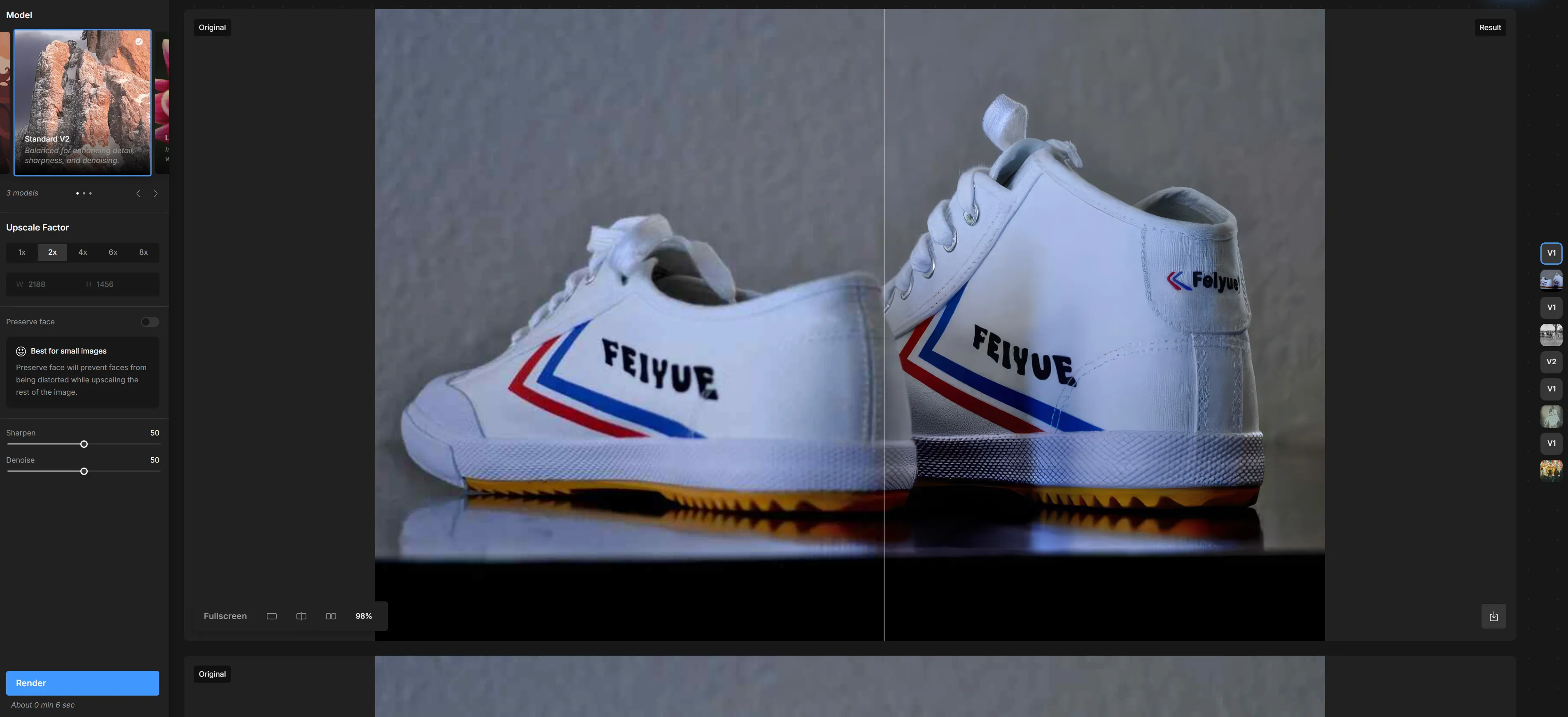 Experience fast, high-quality image quality enhancement in seconds. Get the sharpness, clarity, and detail that your photos deserve. Try it now for free.