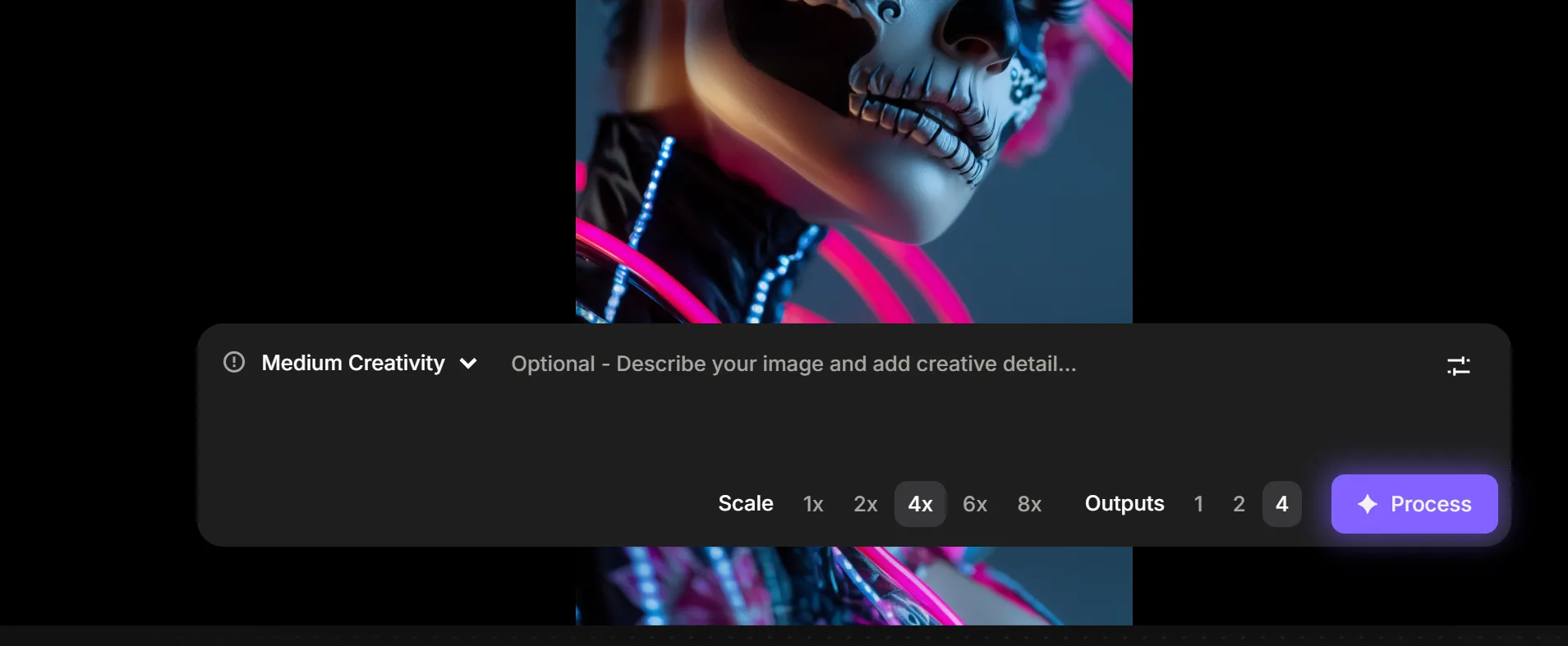 Choosing higher creativity modes allows our AI model to reinterpret details within the original image.