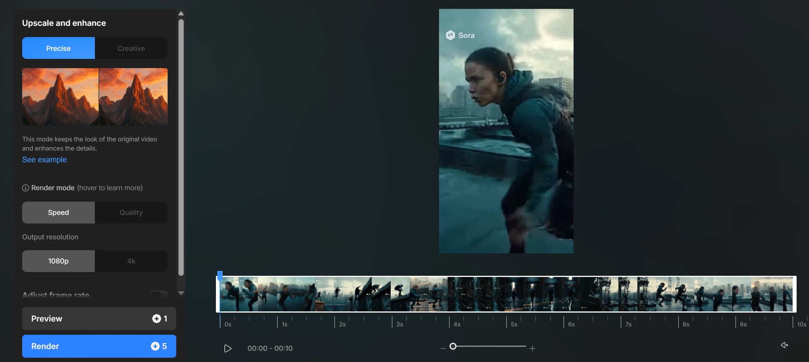 For videos needing only a boost in resolution, Precise upscaling can preserve the content and detail found in the original video while increasing resolution to 4K.